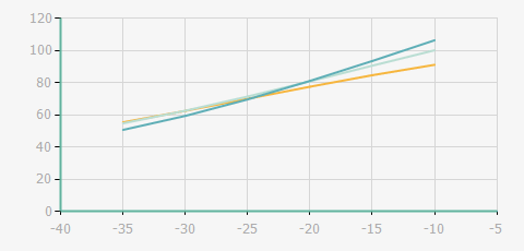 | 蒸發(fā)溫度 | 制冷量+/-5% | 能耗+/-5% | 現(xiàn)在能效+/-5% | 氣體流速+/-5% | 能效+/-7% | ||||