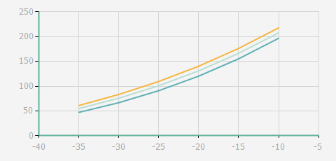 | 蒸發(fā)溫度 | 制冷量+/-5% | 能耗+/-5% | 現(xiàn)在能效+/-5% | 氣體流速+/-5% | 能效+/-7% | ||||