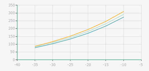| 蒸發(fā)溫度 | 制冷量+/-5% | 能耗+/-5% | 現(xiàn)在能效+/-5% | 氣體流速+/-5% | 能效+/-7% | ||||