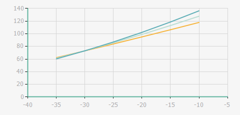 | 蒸發(fā)溫度 | 制冷量+/-5% | 能耗+/-5% | 現(xiàn)在能效+/-5% | 氣體流速+/-5% | 能效+/-7% | ||||