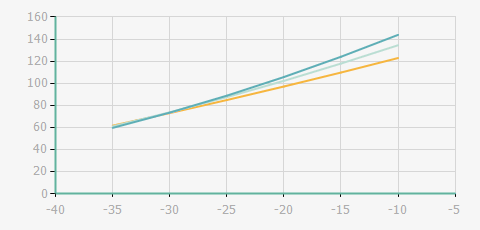 | 蒸發(fā)溫度 | 制冷量+/-5% | 能耗+/-5% | 現(xiàn)在能效+/-5% | 氣體流速+/-5% | 能效+/-7% | ||||